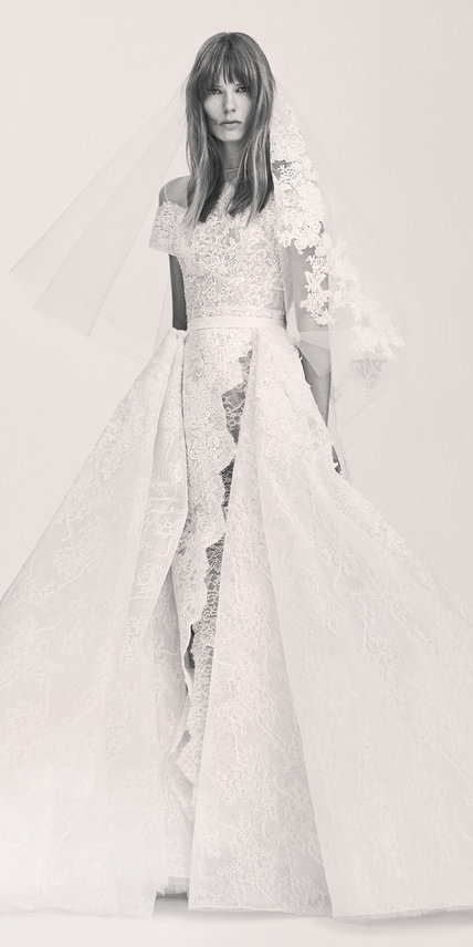 Novità di quest’anno è Elie Saab che ha realizzato un’intera collezione dedicata al grande giorno. Il famoso designer, mantiene la sua favolosa estetica ricca di pizzi, perline anche per la camminata verso l’altare.